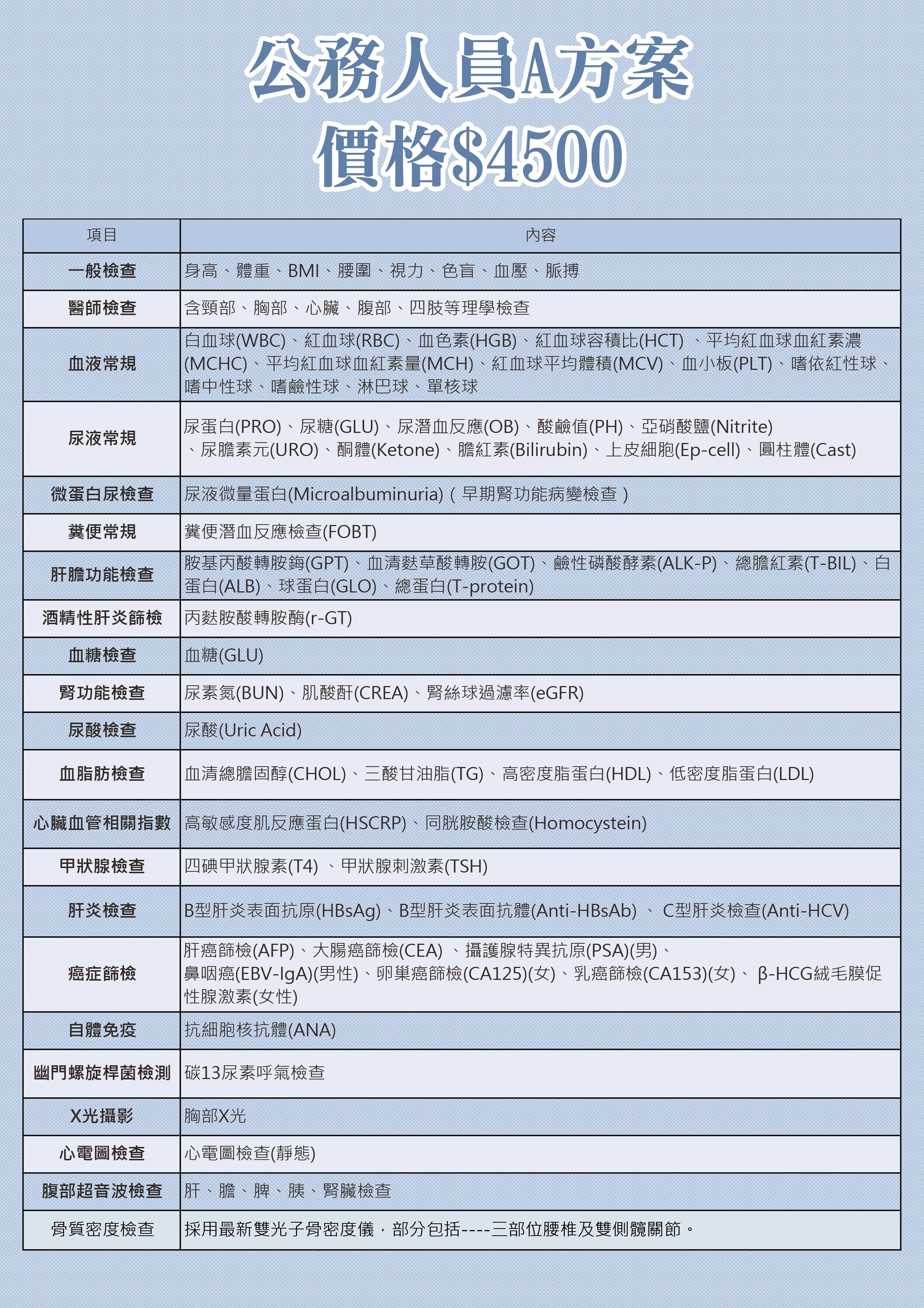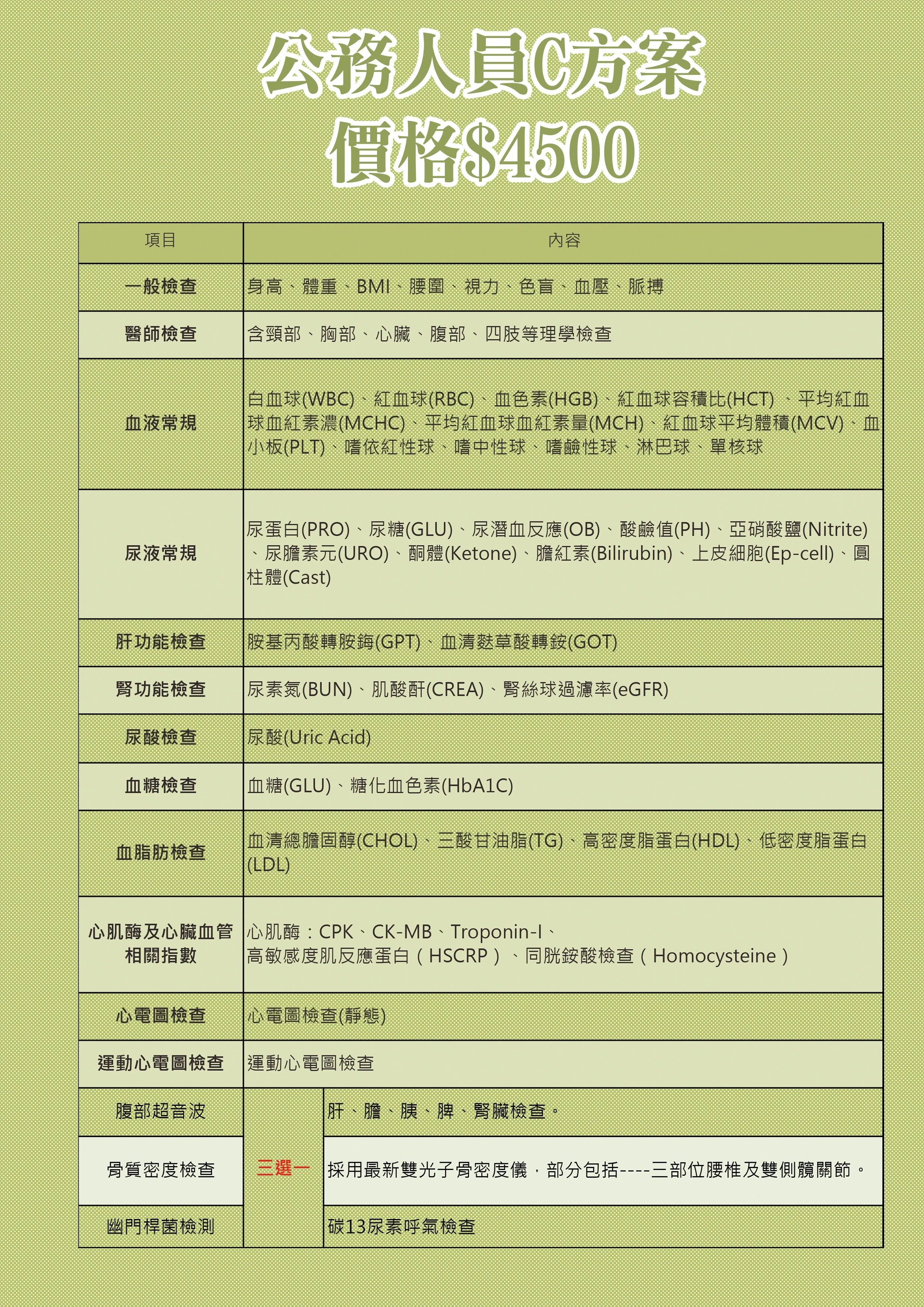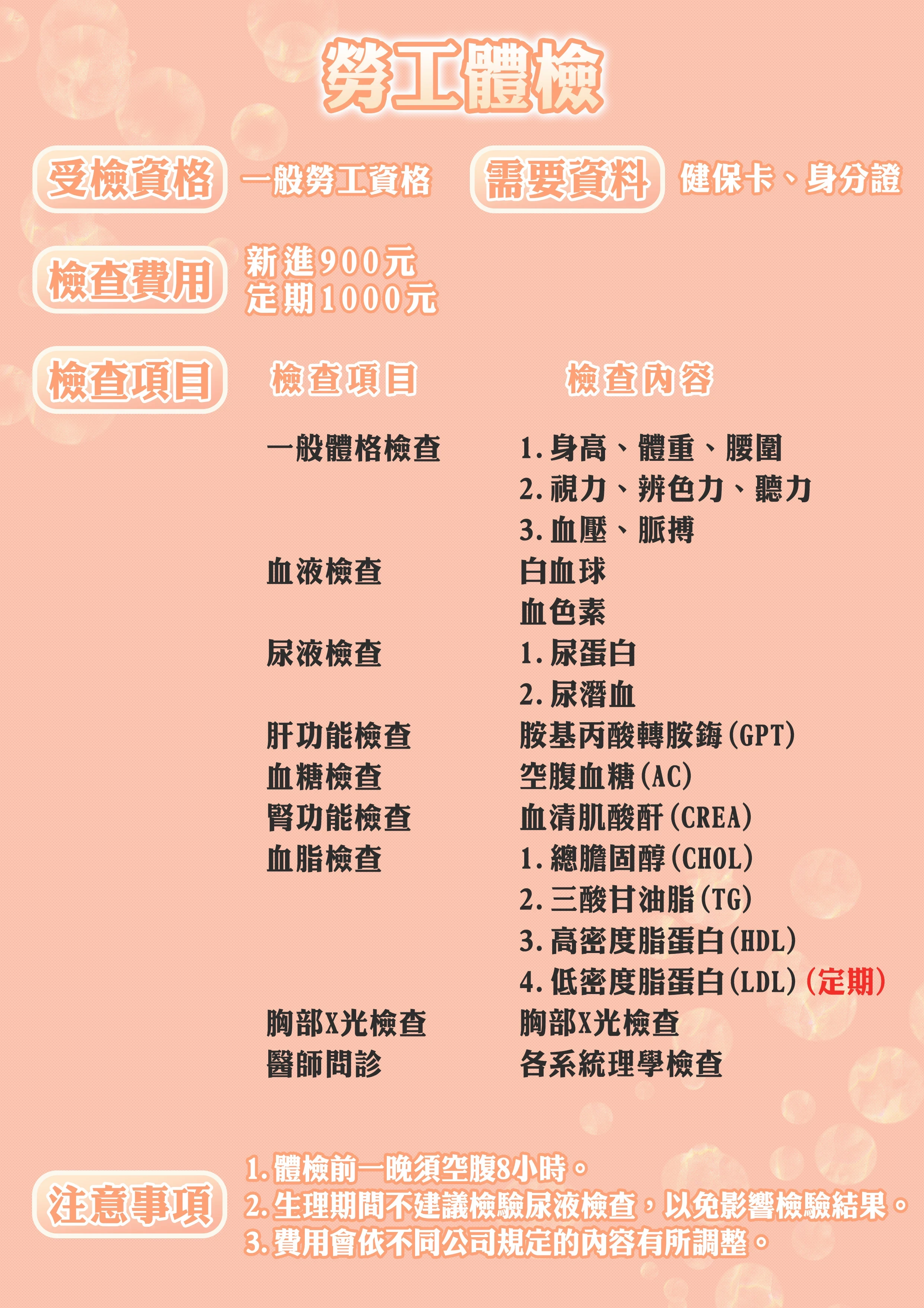 本院採用進口儀器與檢查設備,及試劑和專人處理檢查報告,並定期追蹤個別異常,和完善的後續服務,為您的健康把關。